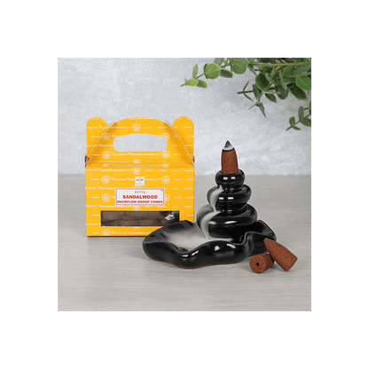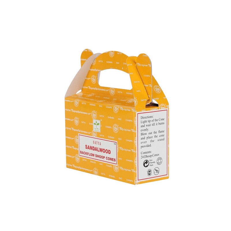 This display box contains 6 packs of beautifully scented Sandalwood backflow incense cones developed by Satya. The cones are crafted using the highest quality ingredients to offer longlasting fragrance. Use these cones with a backflow incense burner to create stunning smoke displays. Product Dimensions: H11cm x W10cm x D4cm Packaged Dimensions: H11.5cm x W20.5cm x D12.5cm