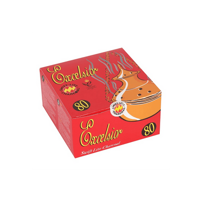 Box of 80 Excelsior swift lite charcoal discs. The box contains 8 individually wrapped packs of 10 discs. The charcoal tablets are commonly used for burning resins, powdered herbal blends and loose incense. The disc should be placed in a fireproof bowl before lighting (our mini cast iron cauldrons are ideal for this), let the charcoal disc heat up - much like as you would with a BBQ, before sprinkling incense, resin or fragranced powder over it. Product Dimensions: H1cm x W3cm x D3cm Packaged Dimensions: H7cm x W13.5cm x D14cm