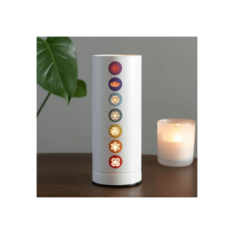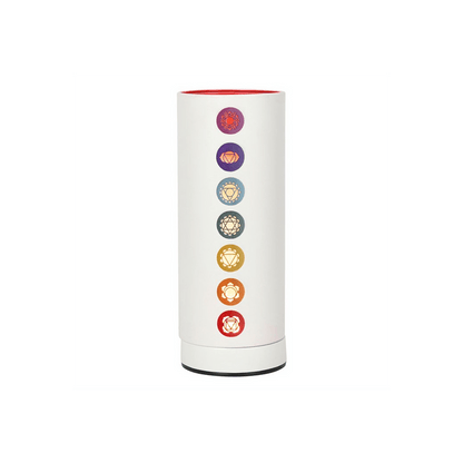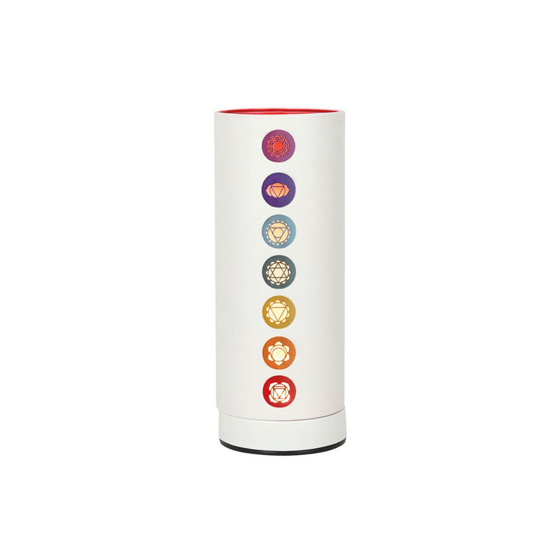 Electric aroma touch lamp featuring the symbols of the Seven Chakras making it a perfect accessory for meditation spaces and relaxation areas. Add a few drops of fragrance oil to the water well inside and tap the lamp to turn it on and start releasing beautiful scents.USB power cablePlug-in AC adaptor not includedCompatible with 5V 2A or 5V 3A AC adapters. Product Dimensions: H25.5cm x W10cm x D10cm Packaged Dimensions: H26.5cm x W12.5cm x D12.5cm