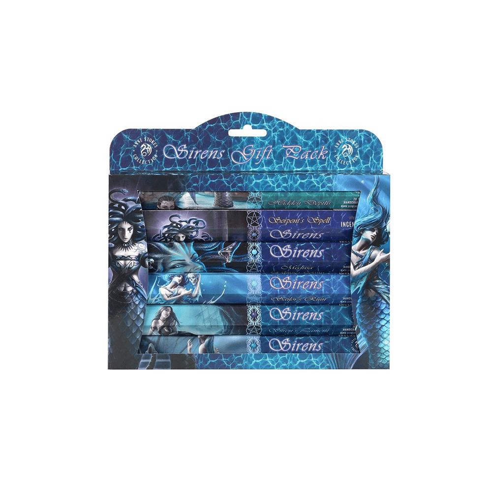 A gift pack from the Sirens Anne Stokes incense range. It includes 6 packs of incense, one of each Sirens scent. Each hexagonal pack contains 20 sticks of incense that will fill your home with mystical scents from the deep sea. Scents include Sailor's Ruin (jasmine), Hidden Depths (night queen), Siren's Lament (frangipani), Medusa (poison), Serpent's Spell (Egyptian musk), and Soul Purpose (lily).