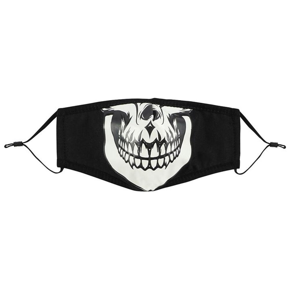 A triple-layered face covering featuring a skull design. Non-medical. This face covering is not a medical mask and is not a replacement for social distancing. Please wash after every use.