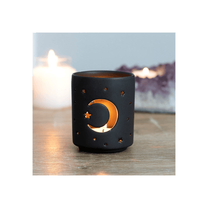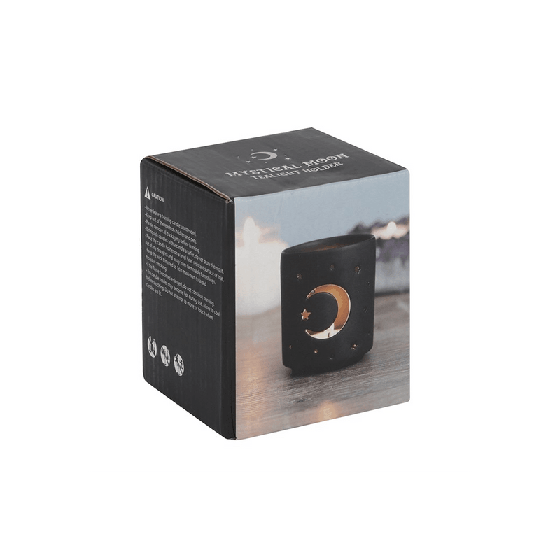 Small Black Mystical Moon Cut Out Tealight Holder