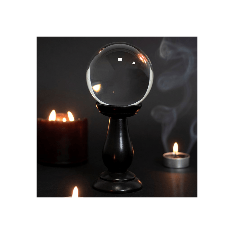 This small, clear crystal ball is not only a powerful tool in fortune telling and scrying, but also makes an eye-catching piece of d?cor. Whether used for divination or a table accessory at Halloween, this crystal ball is sure to be a conversation piece. Comes on black wooden stand. Keep out of direct sunlight. Product Dimensions: H19cm x W9cm x D9cm Packaged Dimensions: H23.5cm x W11cm x D9.5cm