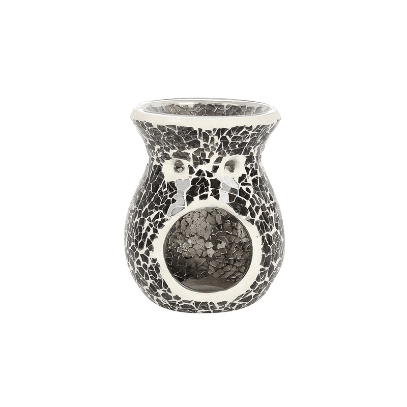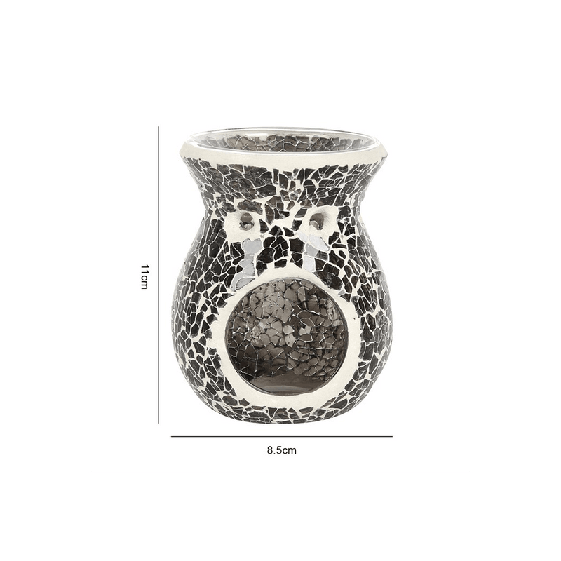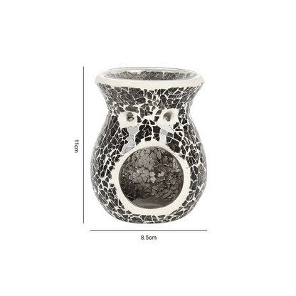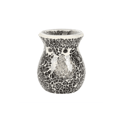 Beautiful small oil burner with a grey mirrored crackle effect. May also be used as a wax melt burner. Product Dimensions: H11cm x W8.5cm x D8.5cm Packaged Dimensions: H14cm x W11cm x D11cm