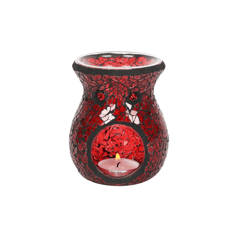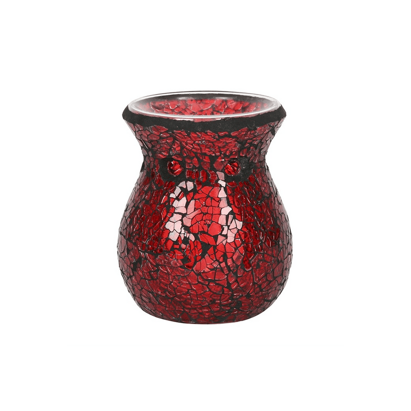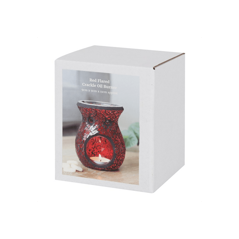 Stunning small oil burner with a red mirrored crackle effect. Would look beautiful in any home. This item can also be used as a wax melt burner however it is advisable to consider the size and depth of the bowl when adding wax to ensure it will not overrun the edges when melted. Product Dimensions: H11cm x W8.5cm x D8.5cm Packaged Dimensions: H14cm x W11cm x D11cm