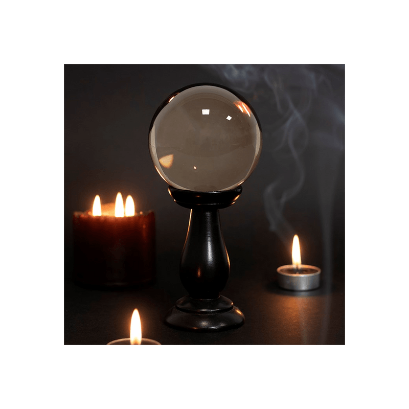 This small, smoky grey crystal ball is not only a powerful tool in fortune telling and scrying, but also makes an eye-catching piece of d?cor. Whether used for divination or a table accessory at Halloween, this crystal ball is sure to be a conversation piece. Comes on black wooden stand. Keep out of direct sunlight. Product Dimensions: H18cm x W9cm x D9cm Packaged Dimensions: H23cm x W11cm x D10cm