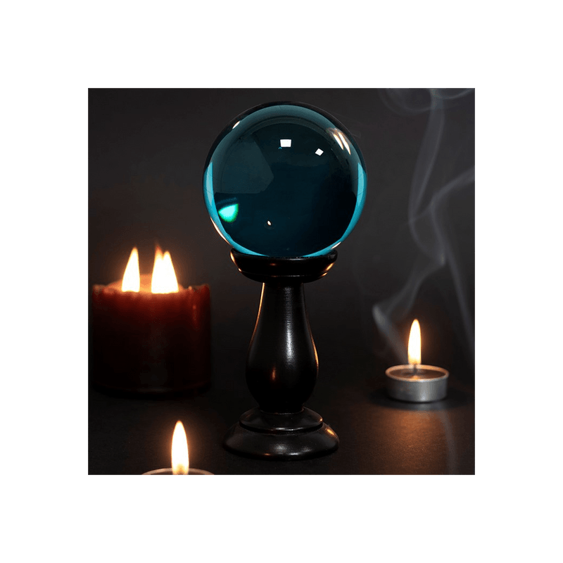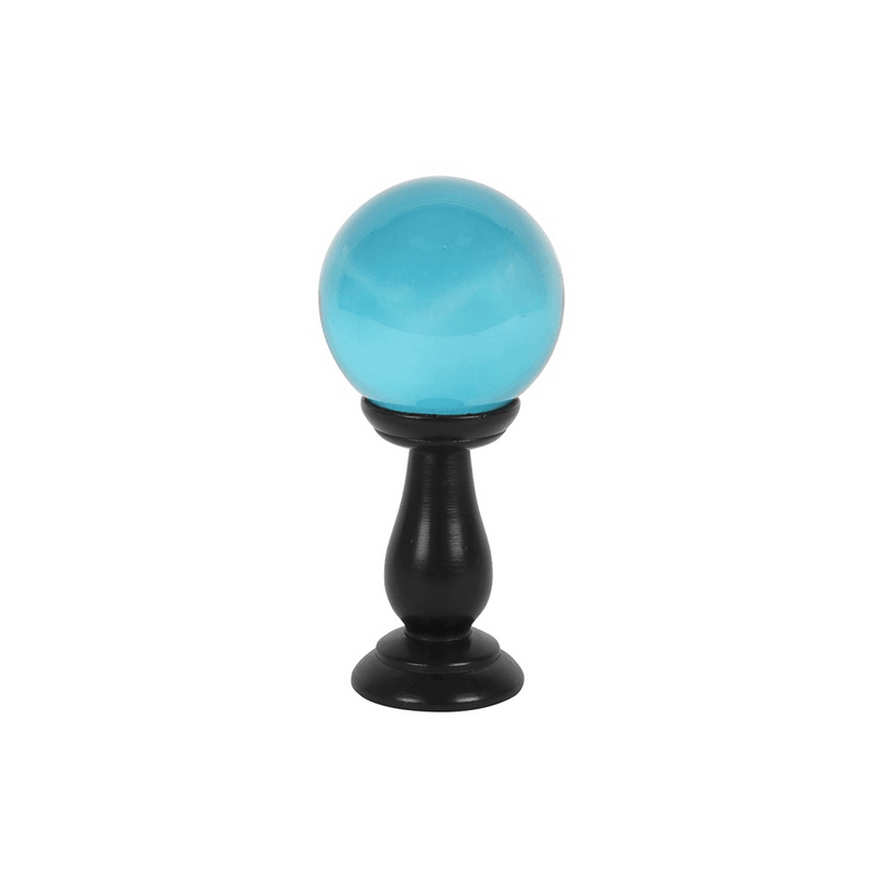 This small, teal blue crystal ball is not only a powerful tool in fortune telling and scrying, but also makes an eye-catching piece of d?cor. Whether used for divination or a table accessory at Halloween, this crystal ball is sure to be a conversation piece. Comes on black wooden stand. Keep out of direct sunlight. Product Dimensions: H19cm x W9cm x D9cm Packaged Dimensions: H23cm x W11cm x D9.5cm