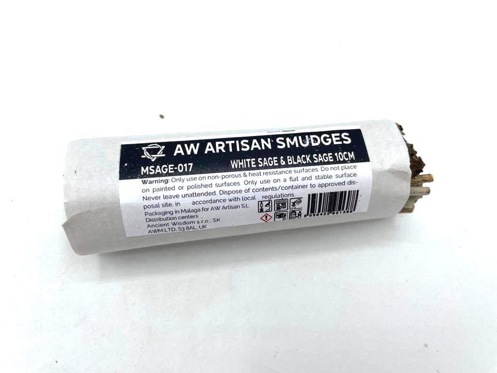 Experience the spiritual and aromatic benefits of the Smudge Stick - White Sage & Black Sage 10cm. A wonderful way to cleanse your space or bring a sense of calm and peace into your daily routine.