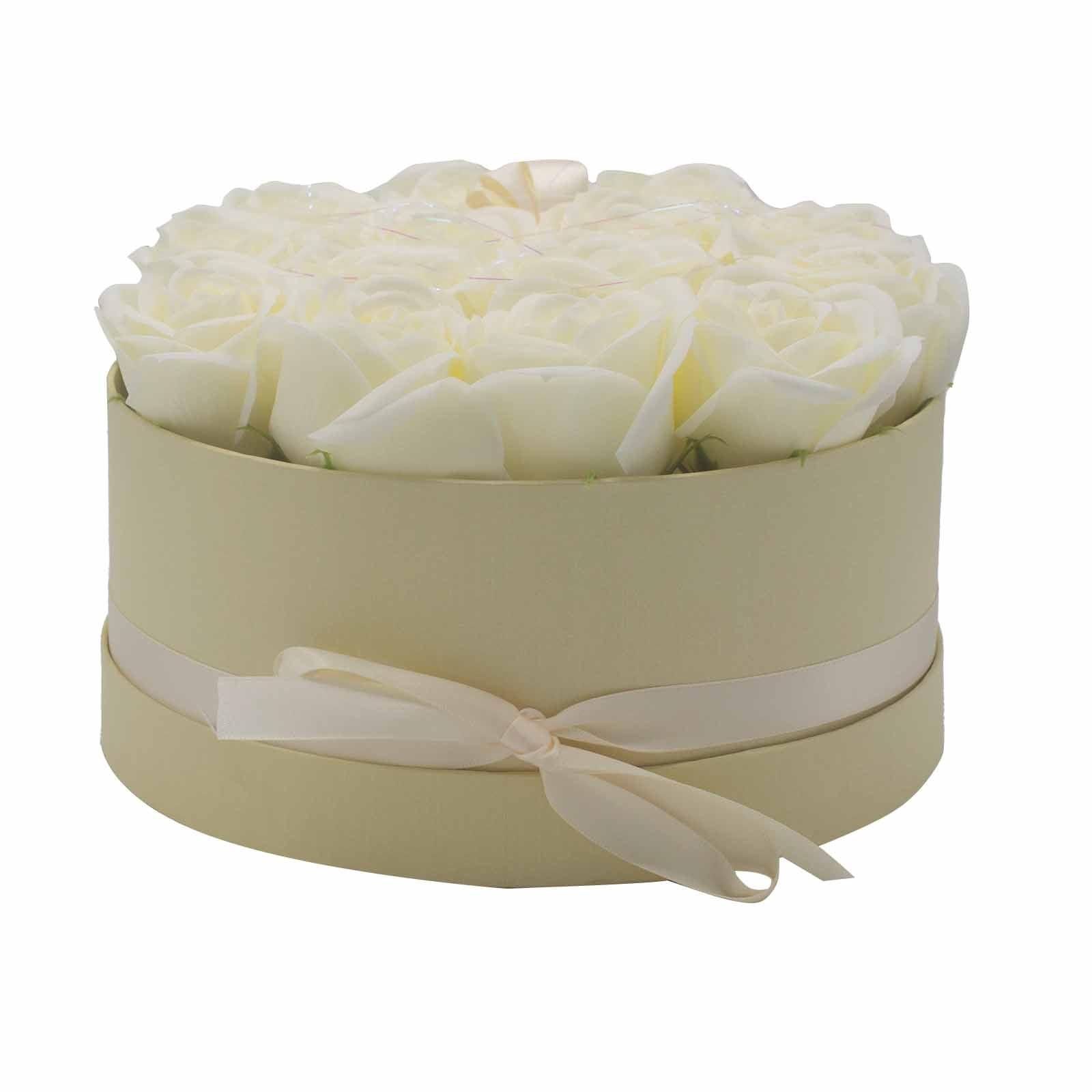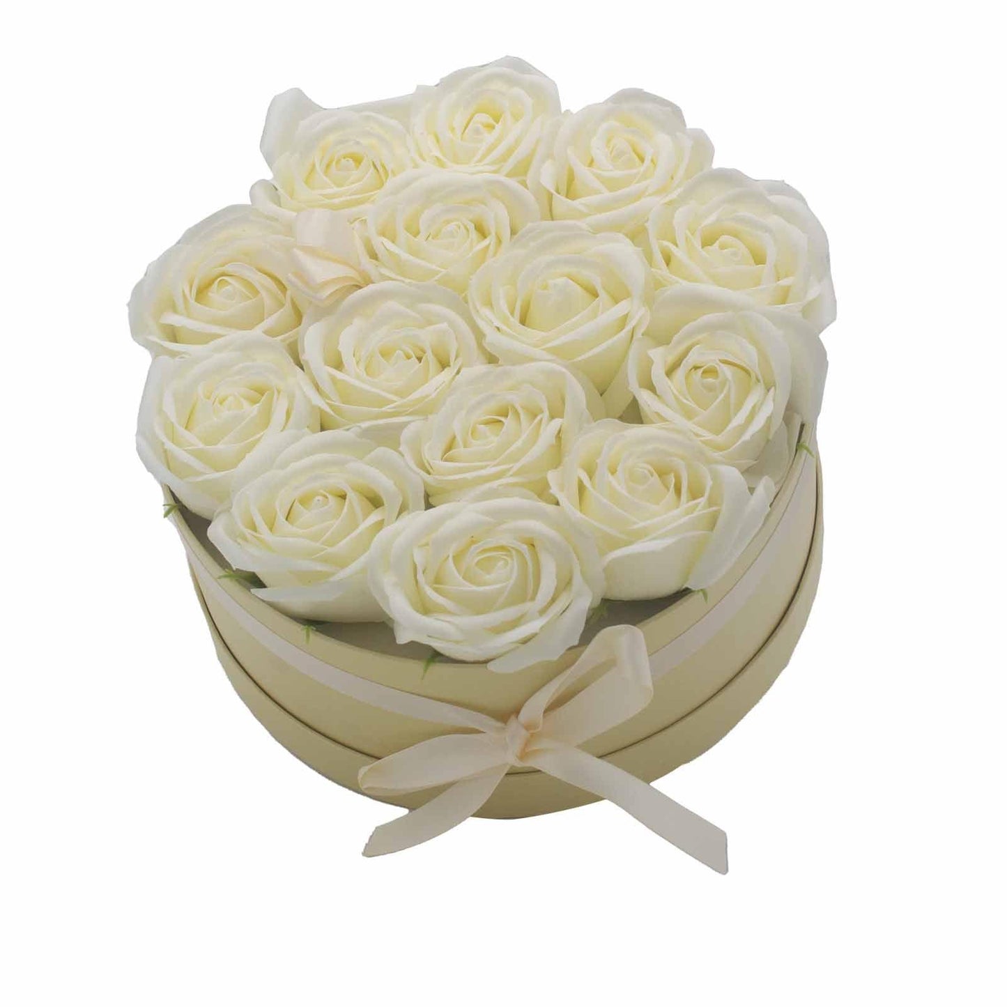 Soap Flower Gift Bouquet - 14 Cream Roses - Round