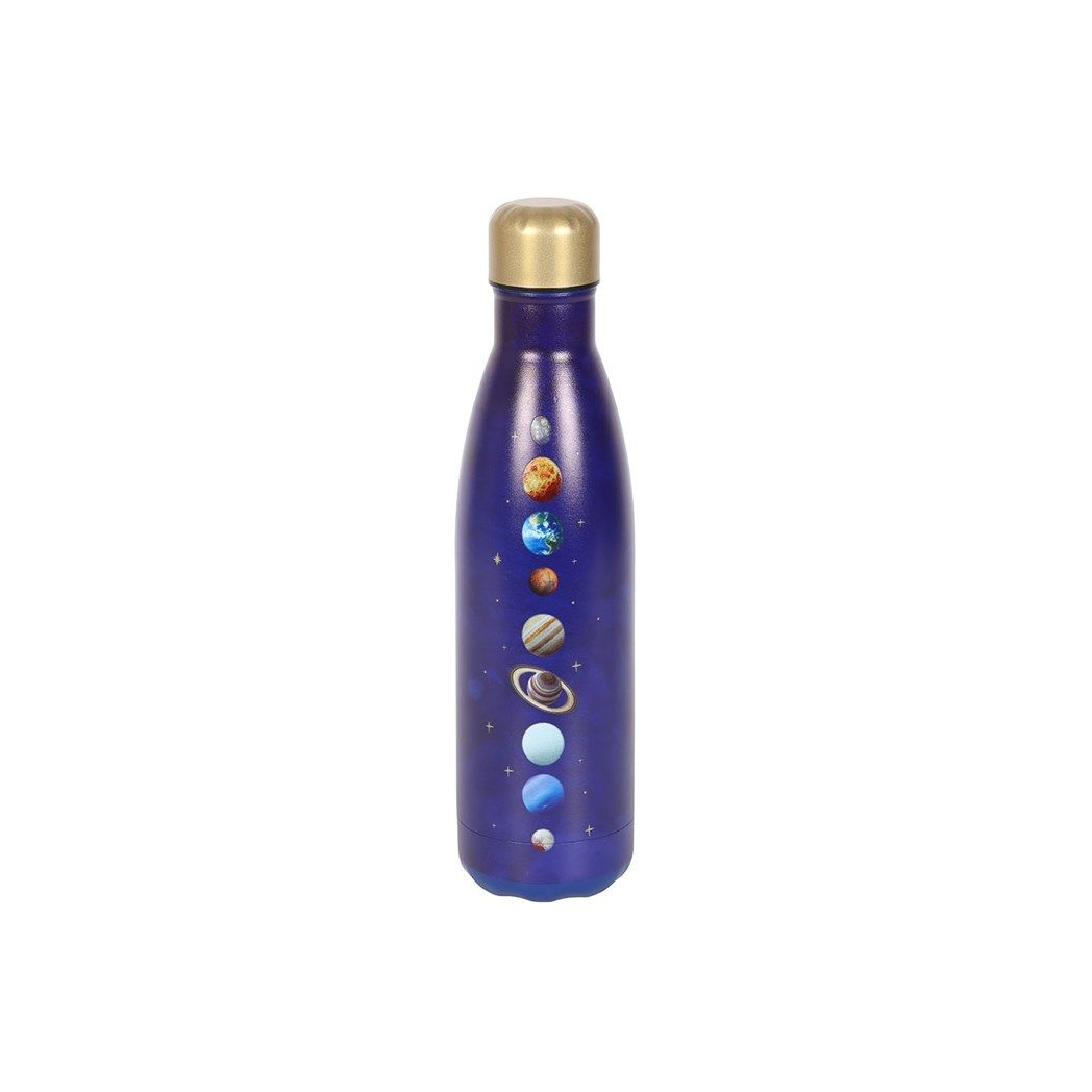 This out-of-this-world blue water bottle features the 9 planets in the solar system and a gold-toned screw-top lid to prevent accidental spills. Perfect for stargazers and dreamers, this water bottle will keep drinks as cool as the mysteries of space. 500ml capacity. Hand wash only. Do not microwave.