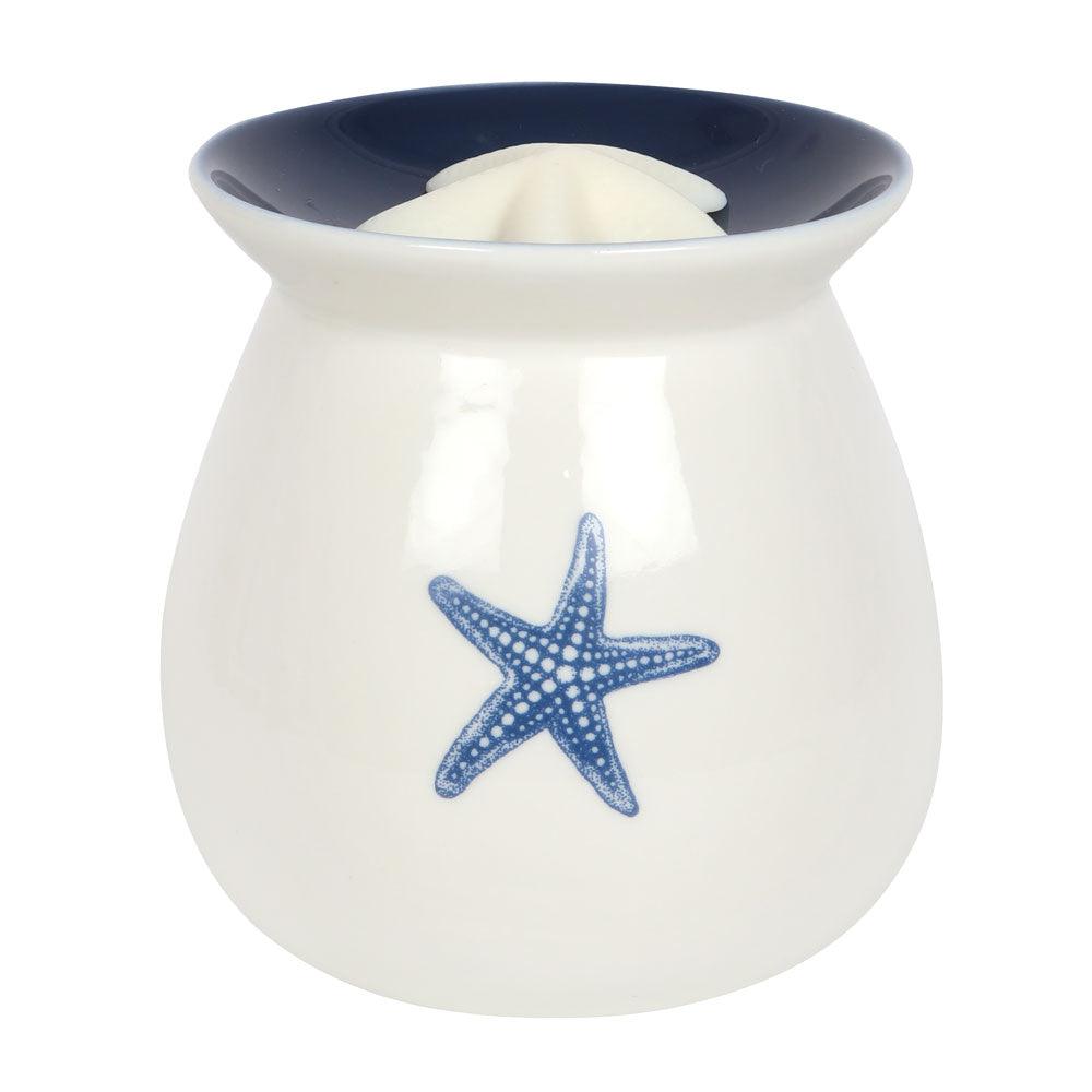 This wax melt burner gift set includes a simple starfish burner and a matching starfish-shaped wax melt in a Sea Salt and Sage fragrance. Beautifully presented, the set is a fantastic gift idea for birthdays or a new home celebration. The wax melts in this gift set are hand poured in the UK from high-quality soy wax and premium fragrance. Product Dimensions: H11.5cm x W10cm x D10cm Packaged Dimensions: H13.5cm x W11cm x D11cm