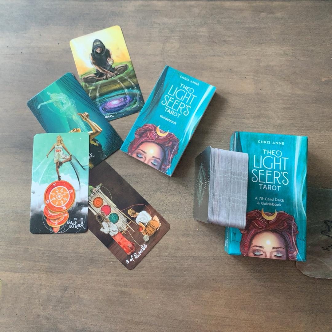 The Light Seer's Tarot card deck by Chris-Anne Donnelly includes a 78-card deck and helpful guidebook. This deck explores the power of light and darkness to help the user better understand their true nature. Beautifully presented in an illustrated box.