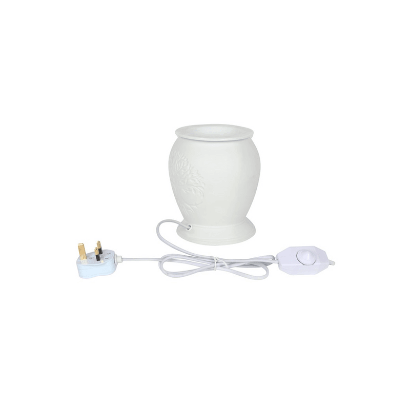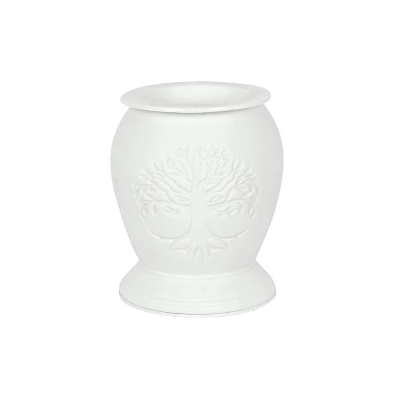 A beautiful white ceramic electric oil burner with a Tree of Life design. Product Dimensions: H15cm x W13cm x D13cm Packaged Dimensions: H19cm x W16.5cm x D16.5cm