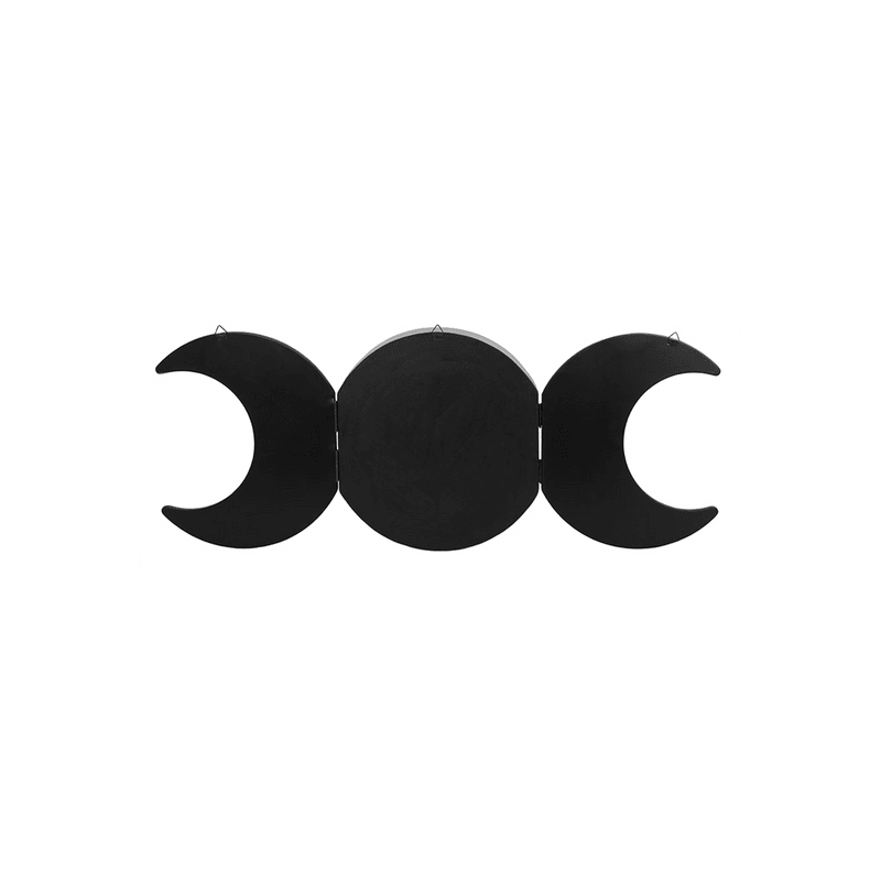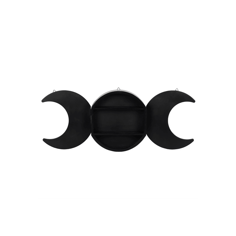 This black triple moon shelving display has the central moon as the storage area with two crescents either side which open out for display. A fantastic focal point for any room. Product Dimensions: H35cm x W90cm x D9.5cm Packaged Dimensions: H36cm x W93cm x D10cm
