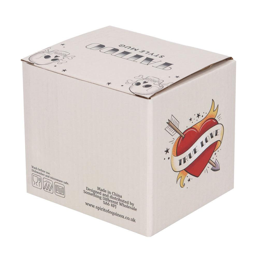 This 'True Love' mug features a heart and arrow design in a vintage tattoo inspired style. A great gift idea for a loved one for Valentine's or an anniversary. Product Dimensions: H9.4cm x W8.6cm x D7.7cm Packaged Dimensions: H10.9cm x W9.6cm x D9.1cm
