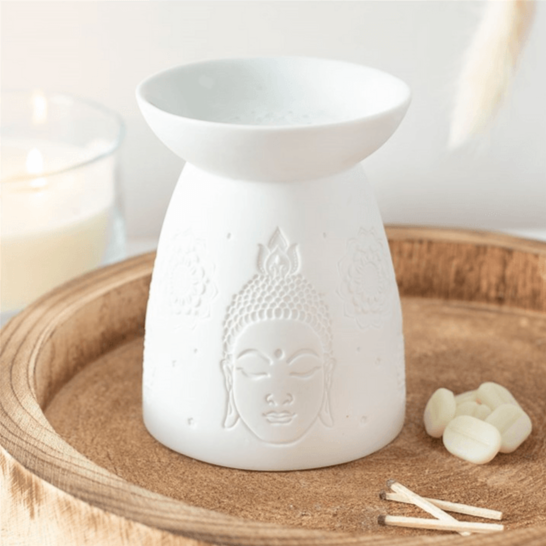 Timeless and elegant, this matte white oil burner features a subtle Buddha design which is softly illuminated when a lit tealight candle is placed inside. Use with your favourite fragrance oils or wax melts to add beautiful scents to your home. Product Dimensions: H12.5cm x W9.5cm x D9.5cm Packaged Dimensions: H14.5cm x W11.5cm x D11.5cm