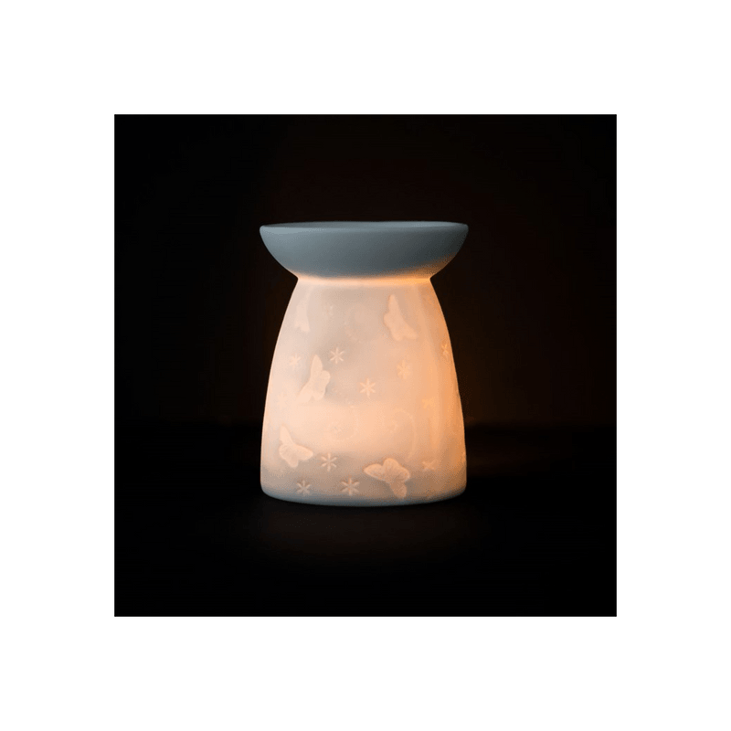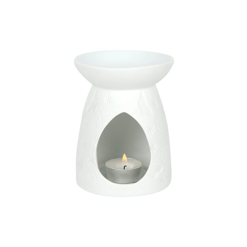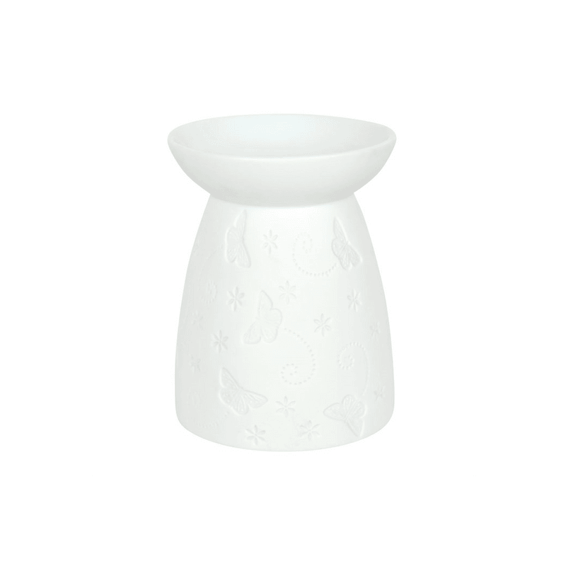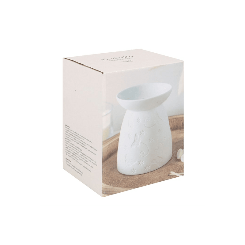 Timeless and elegant, this matte white oil burner features a subtle butterfly design which is softly illuminated when a lit tealight candle is placed inside. Use with your favourite fragrance oils or wax melts to add beautiful scents to your home. Product Dimensions: H12.5cm x W9.5cm x D9.5cm Packaged Dimensions: H14.5cm x W11.5cm x D11.5cm