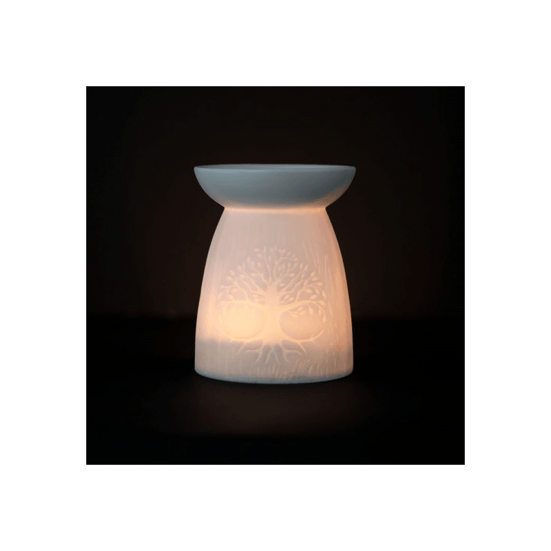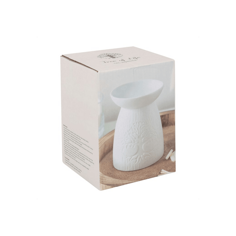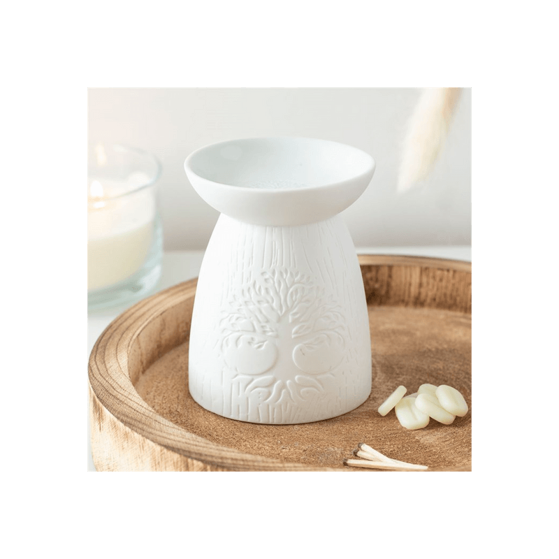 Timeless and elegant, this matte white oil burner features a subtle Tree of Life design which is softly illuminated when a lit tealight candle is placed inside. Use with your favourite fragrance oils or wax melts to add beautiful scents to your home. Product Dimensions: H12.5cm x W9.5cm x D9.5cm Packaged Dimensions: H14.5cm x W11.5cm x D11.5cm