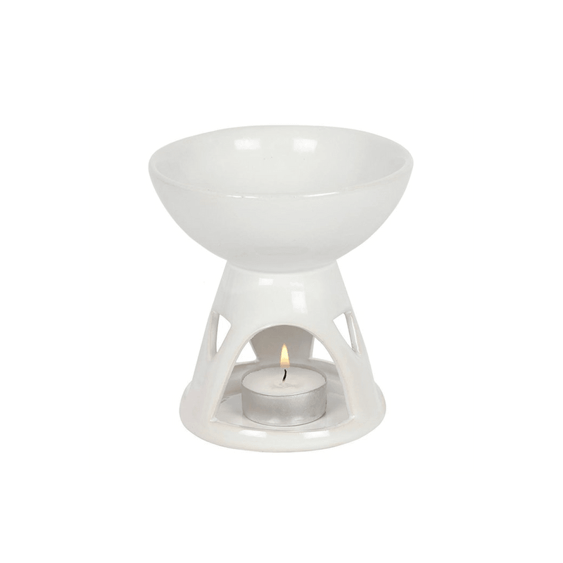 This beautiful white oil burner has a simplistic and modern design. This item can also be used as a wax melt burner however it is advisable to consider the size and depth of the bowl when adding wax to ensure it will not overrun the edges when melted. Product Dimensions: H12cm x W11.5cm x D11.5cm Packaged Dimensions: H16cm x W15cm x D15cm