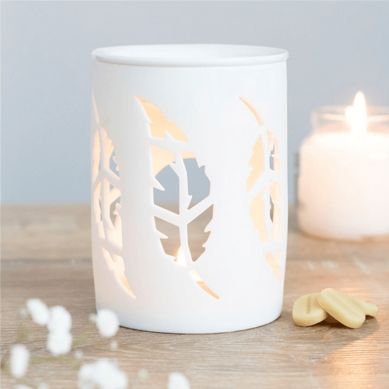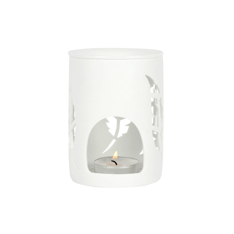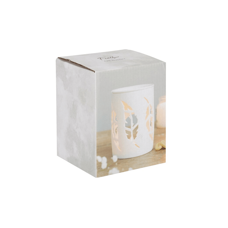 This white ceramic oil burner features cutout feathers in a cute, contemporary design. Place fragrance oil or wax melts into the built-in dish with a standard tealight inside to fill the home with calming fragrance. Product Dimensions: H12cm x W9cm x D9cm Packaged Dimensions: H12cm x W9cm x D9cm