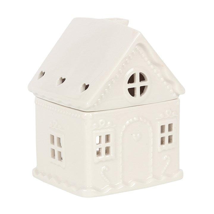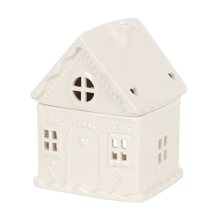 Decorate your home this Christmas with this white gingerbread house oil burner. Place a lit tealight within to create a soft glow and add your favourite festive scented wax melt or fragrance oil to create the ultimate cosy atmosphere.Product Dimensions: H13.5cm x W10cm x D9.2cm Packaged Dimensions: H14cm x W11cm x D9.5cm