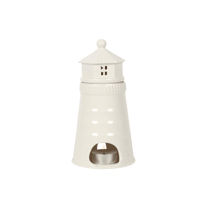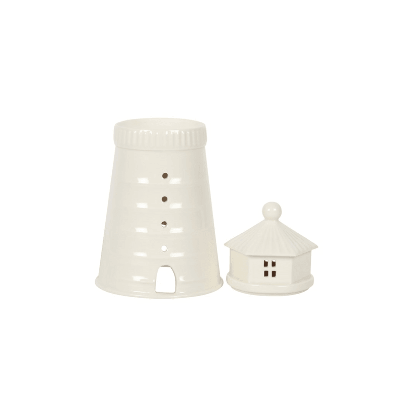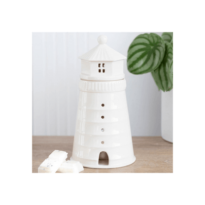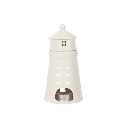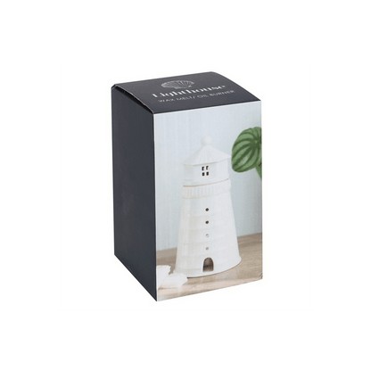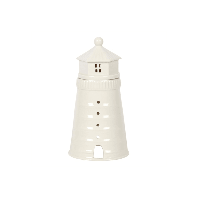 Decorate and scent your home with this unique white lighthouse oil and wax melt burner. Place a lit tealight inside to see a charming glow from the windows and remove the lighthouse lid to add your favourite home fragrance. Product Dimensions: H18cm x W9.4cm x D9.4cm Packaged Dimensions: H21cm x W12.5cm x D12.5cm