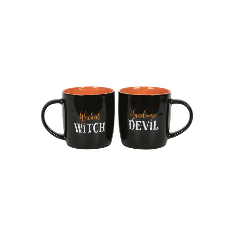 Bold and spooky, this pair of whimsical mugs features 'Wicked Witch' and 'Handsome Devil' text that's perfect for any offbeat couple. 500ml capacity each. Microwave and dishwasher safe.