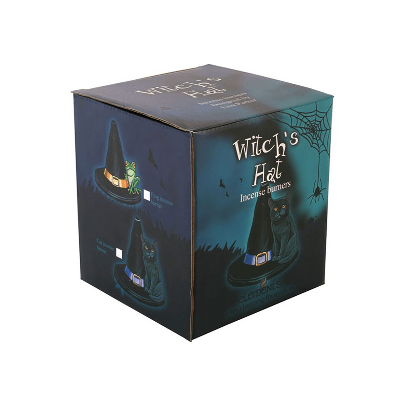A witch hat with a cat design incense cone burner. When the cone is burning, the smoke rises from the top of the hat. Designed by Lisa Parker. Product Dimensions: H11.5cm x W10.5cm x D10.5cm Packaged Dimensions: H14cm x W13cm x D13cm