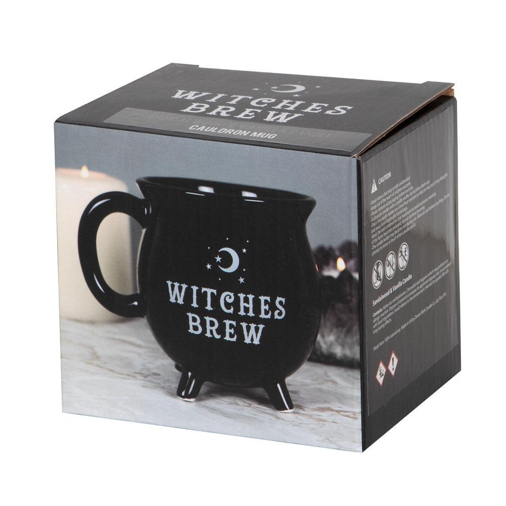 Double, double, toil and trouble. This black cauldron shaped mug works double duty as a Sandalwood & Vanilla fragranced candle. Features 'Witches Brew' text on the front and back and is filled with high quality, eco friendly soy wax hand poured in the UK. 35 hour burn time. 100% vegan soy wax. Please practice caution when burning. Never leave candle unattended when lit. Clean mug thoroughly before use. To clean residual wax, fill mug with boiling water, let cool, then wash with soap and water. Product Dimensions: H10cm x W13cm x D10cm Packaged Dimensions: H11cm x W12cm x D10cm