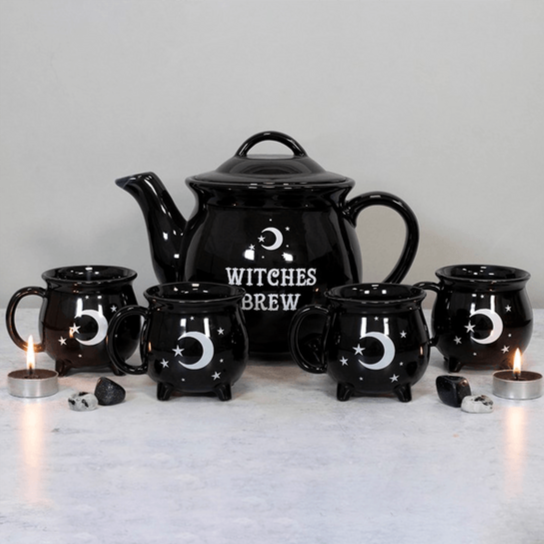Treat your witches to some afternoon tea with this 'Witches Brew' teapot and 4 cauldron cups. It's sure to cause a commotion at the next coven meeting. Product Dimensions: H19cm x W26cm x D16.5cm Packaged Dimensions: H21cm x W51cm x D20cm