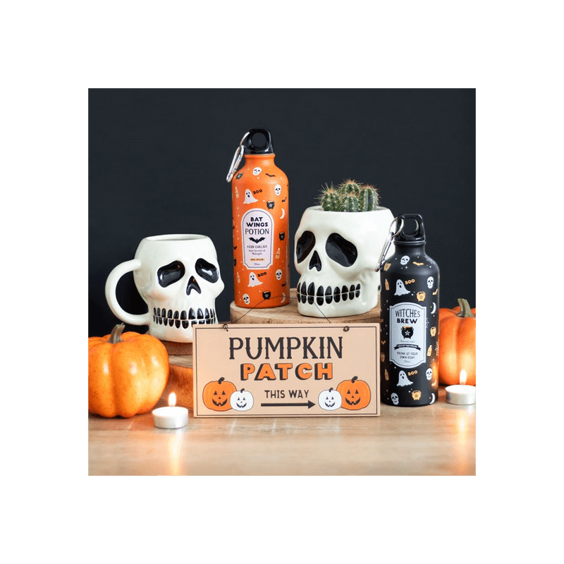 Even witches need to keep hydrated! This metal water bottle makes a great, eco-friendly replacement for plastic and features a screw-top lid and convenient clip for taking on the go. Designed with a fun Halloween print and vintage-inspired 'Witches Brew' illustration that is truly bewitching. 500ml capacity. Product Dimensions: H21cm x W6.5cm x D6.5cm Packaged Dimensions: H21.5cm x W7cm x D7cm